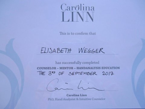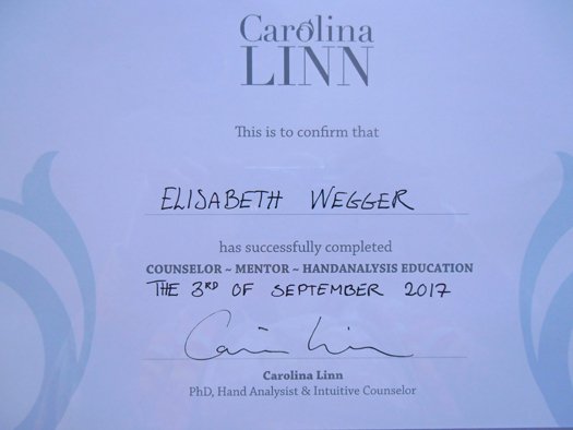 Jeg er færdiguddannet Certificeret Håndanalytiker. Uddannelsen omfatter 100 fulde analyser, 265 sider tekst, et stort antal videoer og øvedage.